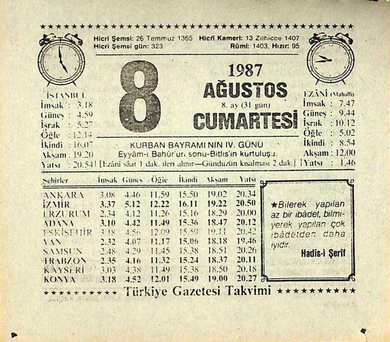 8 Ağustos 1987 Takvim Yaprağı - Doğum Günü Hediyesi EFMN13851, en son 22 gün önce güncellenmiştir.