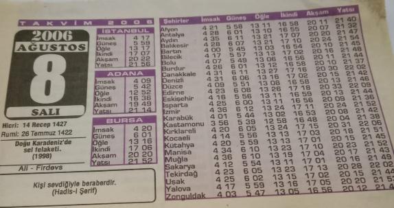 8 Ağustos 2006-Orijinal Takvim Yaprağı-Doğum Günü-Söz,Nişan,Nikâh,Düğün ve Önemli Günler Hediyesi-Bizim Anadolu Takvimleri-Ayet(Hadis-I Şerif)-Doğu Karadeniz'de sel felaketi. (1998))-All - Firdevs-AZİMET VE RUHSAT, en son 2 ay önce güncellenmiştir.