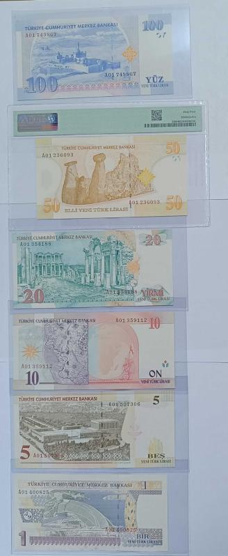 * PARA SETİ A01 SERİSİ OLUP MERKEZ BANKASI ALBÜMÜNDEDİR * SET İÇİNDE 50 YTL PMG SERTİFİKALI DIR * DİĞER İLANLARIMA DA BAKINIZ