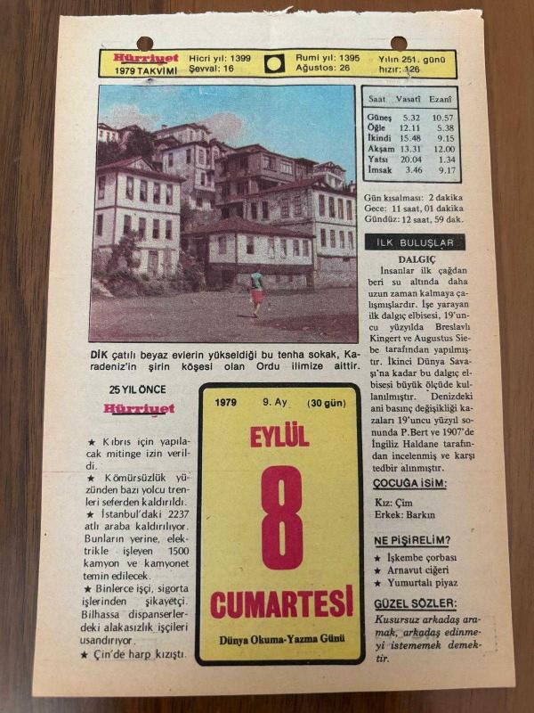 8 EYLÜL 1979 - TAKVİM YAPRAĞI - DOĞUM GÜNÜ HEDİYESİ - HÜRRİYET TAKVİMİ - PİS BİR İŞ ROMANI - Kurtuluş Günü: Balıkesir'in Buhraniye ve Havran, İzmir'in Kemalpaşa ve Selçuk ilçeleriyle Manisanın - Macaristan'da Szeget'in fethi (1526), en son 8 ay önce güncellenmiştir.