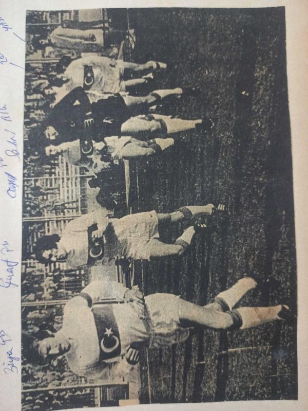 Kitap 1981 yılında yayınlanmıştır. 2 sayfadır. 8 Ekim 1981 - A Milli Futbol Takımı fotoğrafı - Eski bir A milli takım kadrosu - Ziya - Fuat Cemil (Fenerbahçe) - Sabri - Zekeriya ( Beşiktaş ) - Eşofmanlı yedek kaleci Yasin (Galatasaray) fotoğraf ve haberi - Gazete haberi - Tek Yaprak Arkalı Önlüdür adlı eser Türkçe dilindedir.
