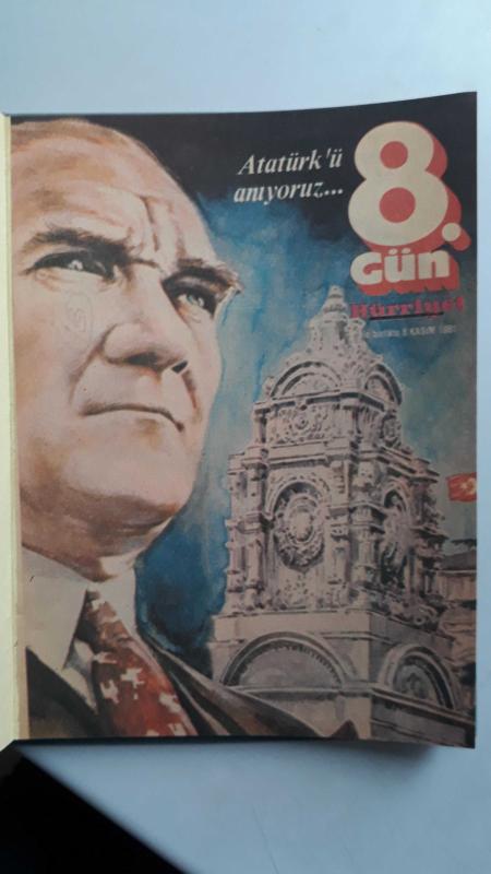 Kitap 1981 yılında Hürriyet tarafından yayınlanmıştır. 60 sayfadır. 8. Gün Dergisi / 8 Kasım 1981 Sayı 87 - Atatürk'ü Anıyoruz & 9 Kasım 1980 10 Kasım Özel Sayısı - 2 Sayı Tek ciltte adlı eser Türkçe dilindedir.