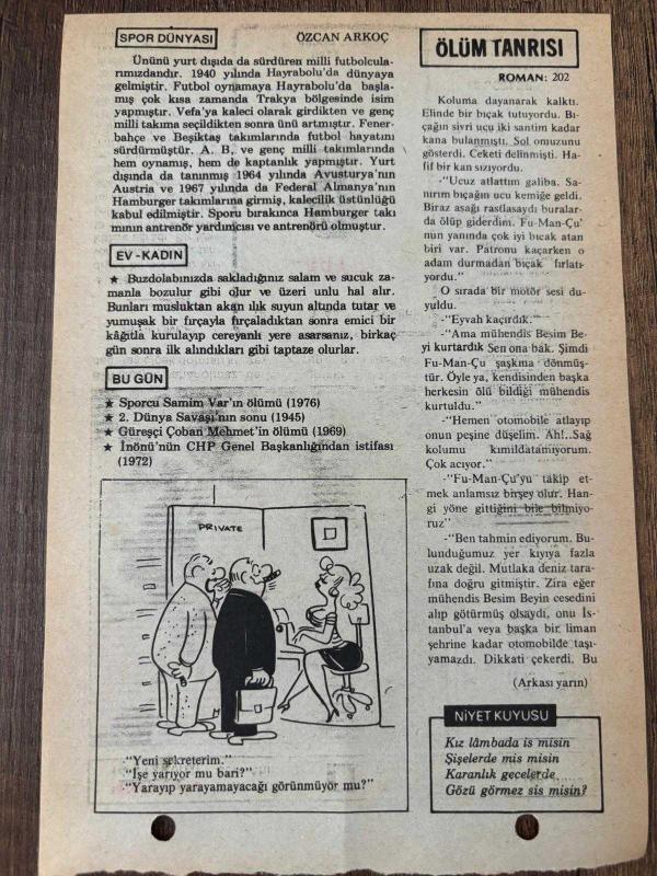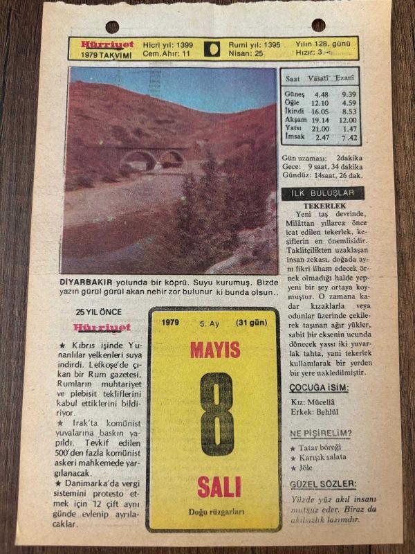 8 MAYIS 1979 - TAKVİM YAPRAĞI - DOĞUM GÜNÜ HEDİYESİ - HÜRRİYET TAKVİMİ - ÖLÜM TANRISI ROMANI - Sporcu Samim Var'ın ölümü (1976) - 2. Dünya Savaşı nın sonu (1945) - Güreşçi Çoban Mehmet'in ölümü (1969) - İnönü'nün CHP Genel Başkanlığından istifası, en son 8 ay önce güncellenmiştir.