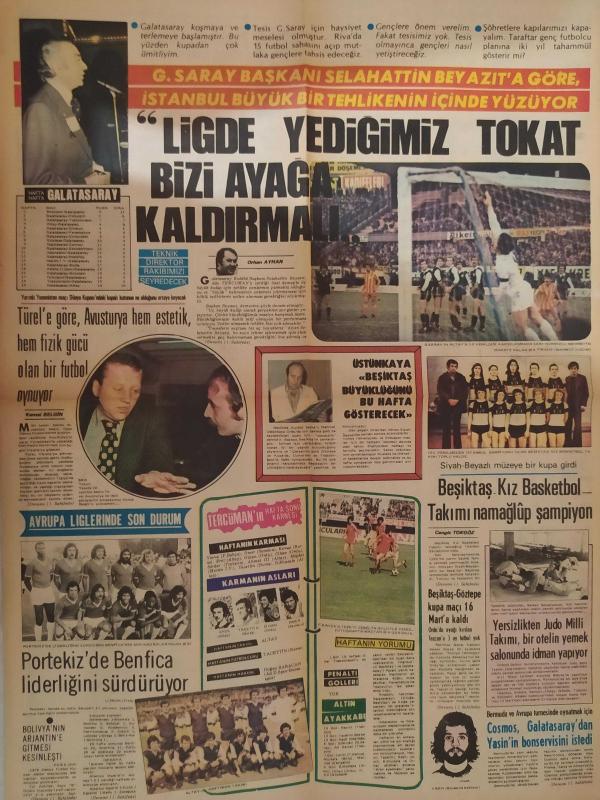 Kitap 1977 yılında yayınlanmıştır. 2 sayfadır. 8 Mart 1977 - Tercüman Gazetesi - Galatasaray, Başkanı Selahattin Beyazıt'a göre, İstanbul Büyük bir tehlikenin içinde yüzüyor - ''Ligde yediğimiz tokat bizi ayağa kaldırmalı'' - Beşiktaş-Kız Basketbol Takımı namağlup şampiyon - Portekiz'de Benfica liderliğini sürdürüyor Gazete tam değildir sadece 2 sayfası mevcuttur - Tek yaprak arkalı önlüdür adlı eser Türkçe dilindedir.