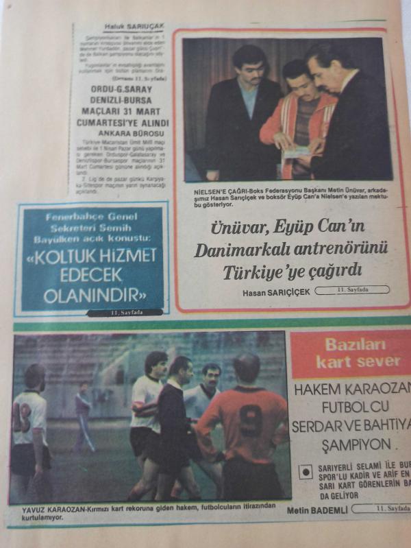 8 Mart 1984 - Metin Ünüvar, Eyüp Can'ın Danimarkalı antrenörünü Türkiye'ye çağırdı - Bazıları kart sever - Hakem Karaozan, futbolcu Serdar ve Bahtiyar şampiyon - Gazete haberi - Tek Yaprak Arkalı Önlüdür adlı eser, Kitap > Süreli Yayınlar > Dergiler > Spor kategorisinde İkinci El olarak satıştadır.