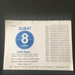 8 ŞUBAT 2008 -TAKVİM YAPRAĞI-DOĞUM GÜNÜ HEDİYESİ-KUVEYT TÜRK TAKVİMİ,YENİ CAMİNİN İBADETE AÇILIŞI,1664,ANTEPE GAZİ ÜNVANI VERİLİŞİ,1921,ÇOCUĞUN DÜNYASI, en son 8 ay önce güncellenmiştir.