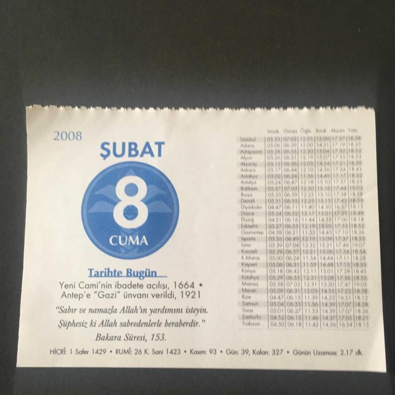 8 ŞUBAT 2008 -TAKVİM YAPRAĞI-DOĞUM GÜNÜ HEDİYESİ-KUVEYT TÜRK TAKVİMİ,YENİ CAMİNİN İBADETE AÇILIŞI,1664,ANTEPE GAZİ ÜNVANI VERİLİŞİ,1921,ÇOCUĞUN DÜNYASI başlıklı ürün, Efemera, Müzik, Sinema > Belge ve Evraklar > Takvimler kategorisi altında İkinci El olarak satılmaktadır.