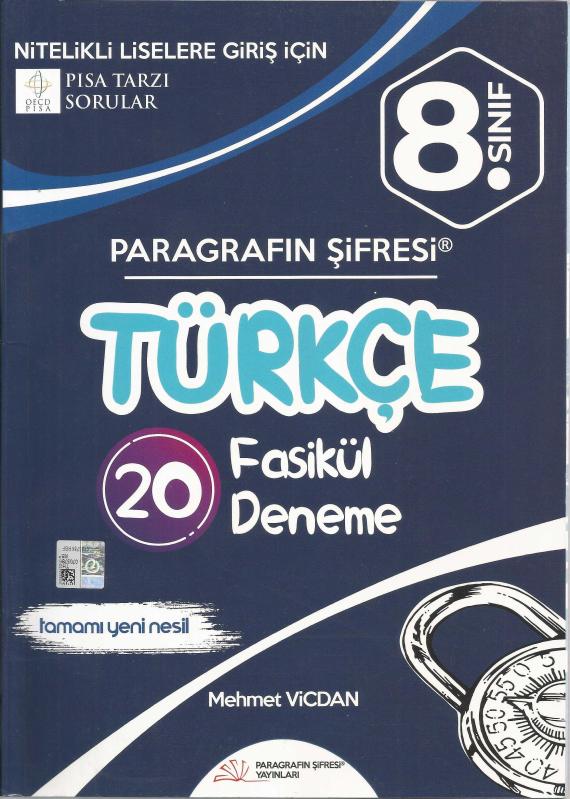 8. Sınıf Paragrafın Şifresi Türkçe 20 Fasikül Deneme (Tamamı Yeni Nesil) adlı eser, Kitap > Sınav ve Ders Kitapları > Sınavlara Hazırlık > Liselere Geçiş Sınavları kategorisinde Yeni olarak satıştadır.