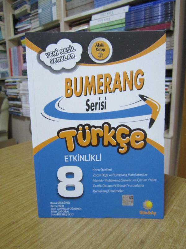 8. Sınıf Türkçe Etkinlikli Bumerang Serisi / Günay Yayınları, Komisyon tarafından kaleme alınmıştır. Kitap 2019 yılında Günay Yayınları tarafından yayınlanmıştır. 240 sayfadır. 8. Sınıf Türkçe Etkinlikli Bumerang Serisi / Günay Yayınları adlı eser Türkçe dilindedir.