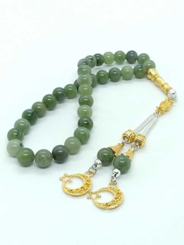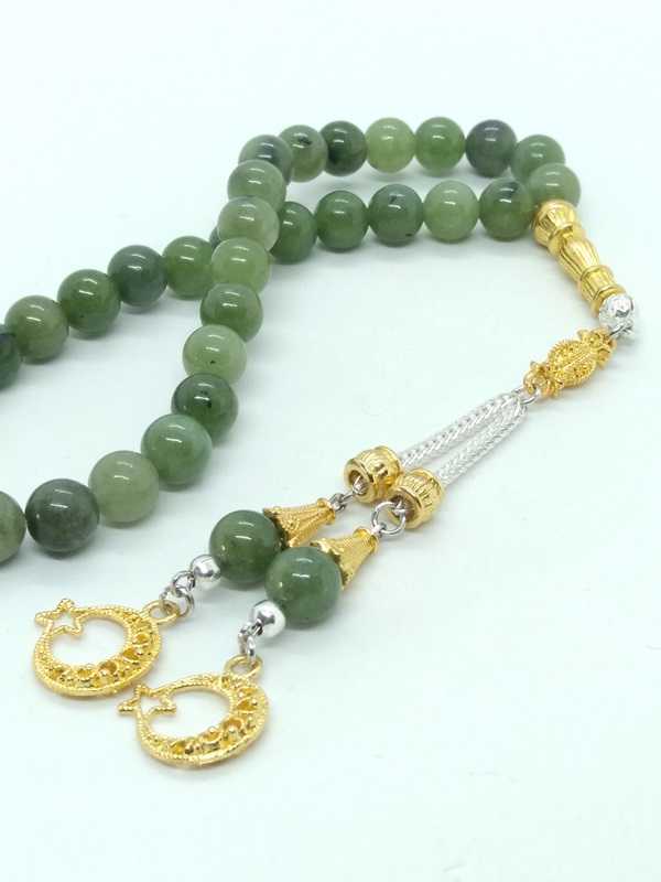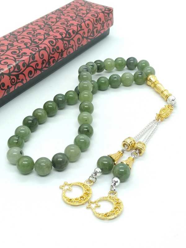 "Yeşim taşının (Jade) doğal yeşil tonlarını barındıran, özel işçilikli tespih. 8 mm küre kesim taneler, esnek misina dizilimi ile elde kayan bir çekim hissi sunar. Geleneksel Ay Yıldız motifli sarkaç ucuyla tamamlanmıştır. 33'lüktür. Koleksiyonunuza değer katacak, enerjisiyle bilinen gerçek doğaltaş tespih." Ücretsiz ve hızlı kargo gönderimi yapılır. Aynı gün veya en geç ertesi gün. Hediyelik kutusu ve yedek ipi ile gönderilir. Resimdeki kutu stoklara bağlı olarak farklılık gösterebilir. Kendiniz ve sevdikleriniz için özel bir hediye... NOT: ÜRÜN KENDİ TARAFIMIZDAN TASARLANMIŞ OLUP ORJİNAL RESMİNE UYGUN OLARAK GÖNDERİLİR.