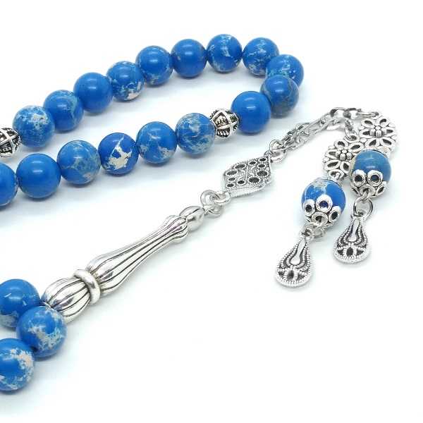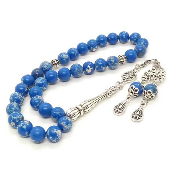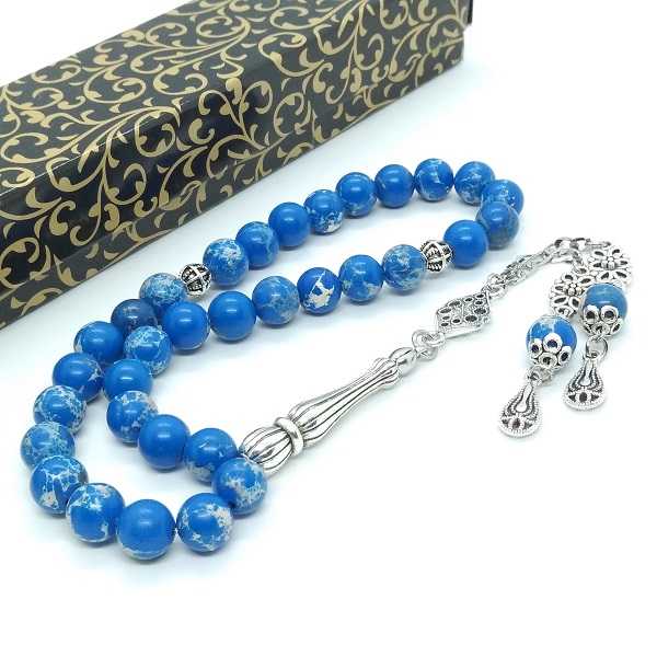 "Göz alıcı lapis mavisi tonlarıyla doğanın enerjisini parmaklarınızda hissedin. 8 mm boyutunda, tam 33 adet yüksek kaliteli Varisit (İmparator Taşı) kullanılarak özenle dizilmiştir." Ürün Detayları: Taş Cinsi: Doğal Varisit (Mavi tonlarında damarlı özel doku). Dizim: Kopmaya dayanıklı, esnek misina ipi ile çekim kolaylığı sağlar. Tekli ve çiftli çekime uygundur. İmame ve Püskül: Kararmaya dayanıklı, yüksek kaliteli gümüş kaplama metal aparatlar. Zarif sistemli püskül tasarımı ile şıklığı tamamlanmıştır. Ölçü: 8 mm tane boyutu (Günlük çekim ve elde taşımaya en uygun ideal ölçü). Kondisyon: Sıfır, hiç kullanılmamış ve kutusunda gönderilecektir. Varisit taşı, spiritüel dünyada 'cesaret ve özgüven taşı' olarak bilinir. Hem stres atmak hem de şık bir aksesuar olarak kullanmak isteyenler için mükemmel bir seçimdir. Ücretsiz hızlı kargo ile özenle paketlenerek gönderilir. Aynı gün veya en geç ertesi gün. Hediyelik kutusu ve yedek ipi ile gönderilir. Resimdeki kutu stoklara göre farklılık gösterebilir. KENDİNİZ VE SEVDİKLERİNİZ İÇİN HER ZAMAN VE ÖZEL GÜNLERDE ŞIK BİR TERCİH... ÜRÜN ORJİNAL RESİMLERİNDEKİ GİBİ GÖNDERİLİR. TASARIM TARAFIMIZA AİTTİR.