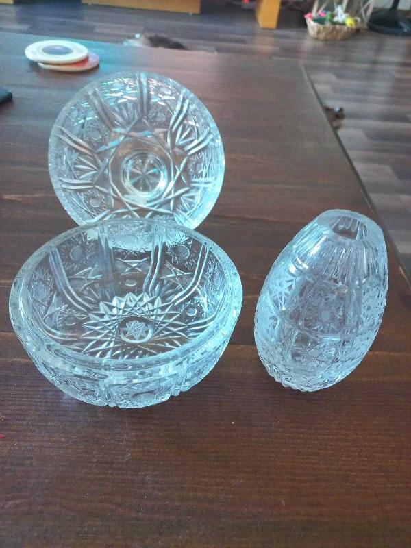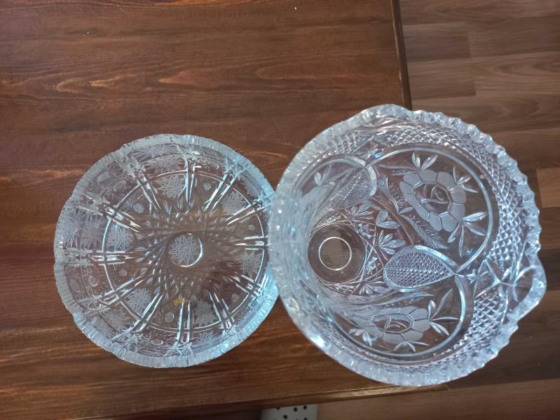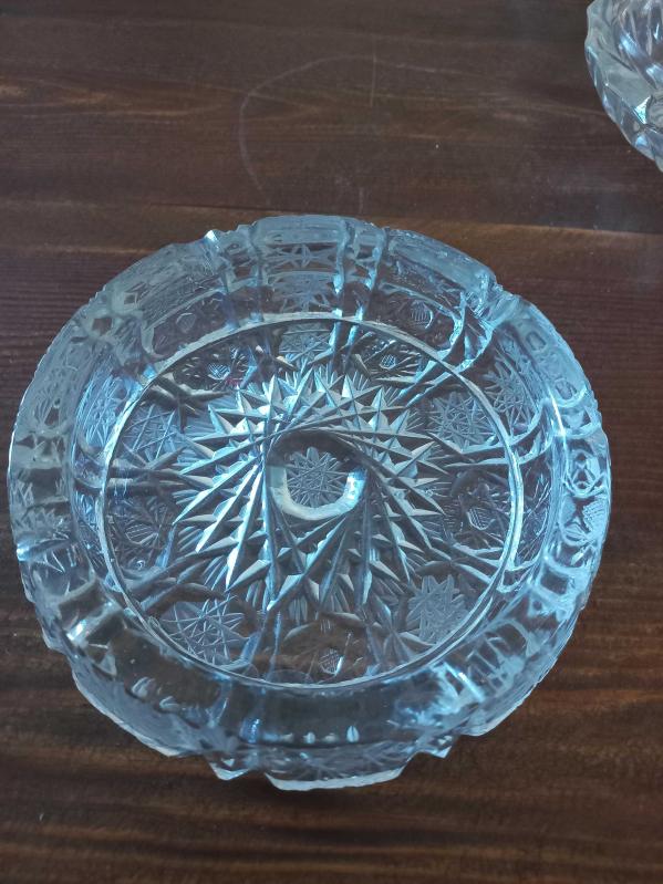 80'lerden kesme cam takımı MEYVELİK VAZO KÜLLÜK ŞEKERLİK 5 parça başlıklı antika/koleksiyon objesi Avrupa menşe’lidir. 1950-1999 arası dönemine aittir.