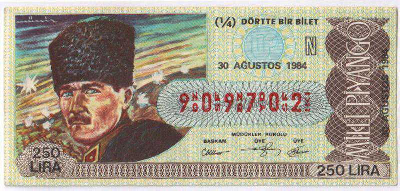 80'li YıllaraAit 4 Adet Piyango: Atatürk Portresi, Bayrak ve Önce Vatan Temalı Biletler, en son 1 yıl önce güncellenmiştir.