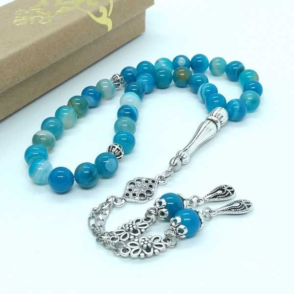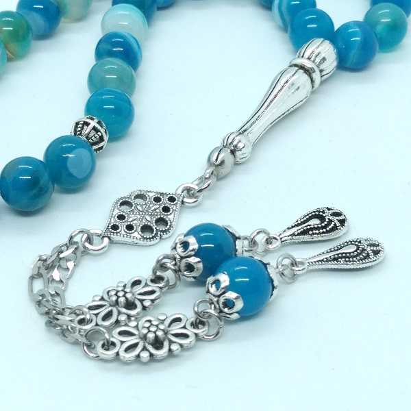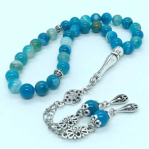 8mm Mavi Akik Doğal Taş Tespih - Gümüş Kaplama İşlemeli Kamçı - 33lü, en son 28 gün önce güncellenmiştir.