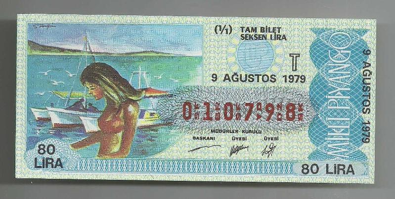 ** 9 AĞUSTOS 1979 GEÇEN YAZ TEMALI MİLLİ PİYANGO TAM BİLET (010798) ** Güzel görünümlü,gayet de iyi kondüsyonda orijinal tam bilettir...