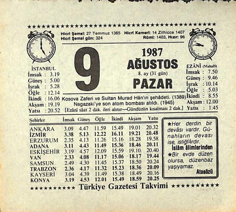 9 Ağustos 1987 Takvim Yaprağı - Doğum Günü Hediyesi EFMN13852, en son 22 gün önce güncellenmiştir.
