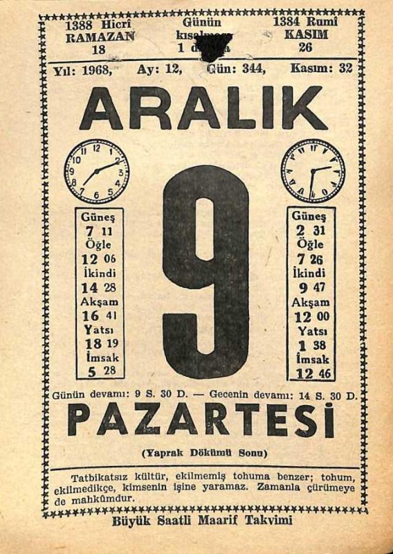 9 Aralık 1968 Takvim Yaprağı - Doğum Günü Hediyesi EFM(N)11066, en son 20 gün önce güncellenmiştir.