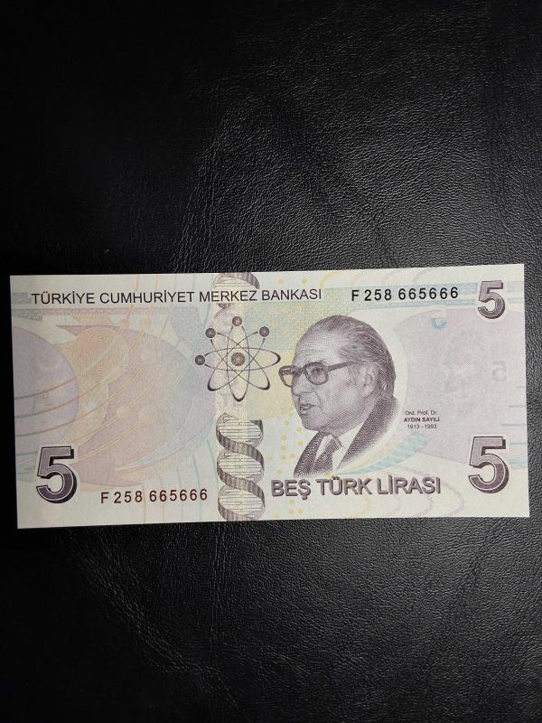 9. EMİSYON 5 TÜRK LİRASI F 258 665666 ÇİL ( GÜZEL NO- K. MERDİVEN ) TCB 3035, 2 ay önce satışa sunulmuştur.