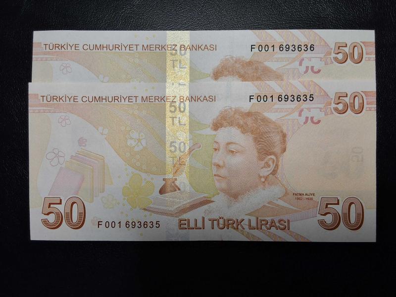 9. EMİSYON 50 TÜRK LİRASI F 001 693635 - 693636 ( SERİ TAKİPLİ ) ÇİL TCM 2603, 20 gün önce satışa sunulmuştur.