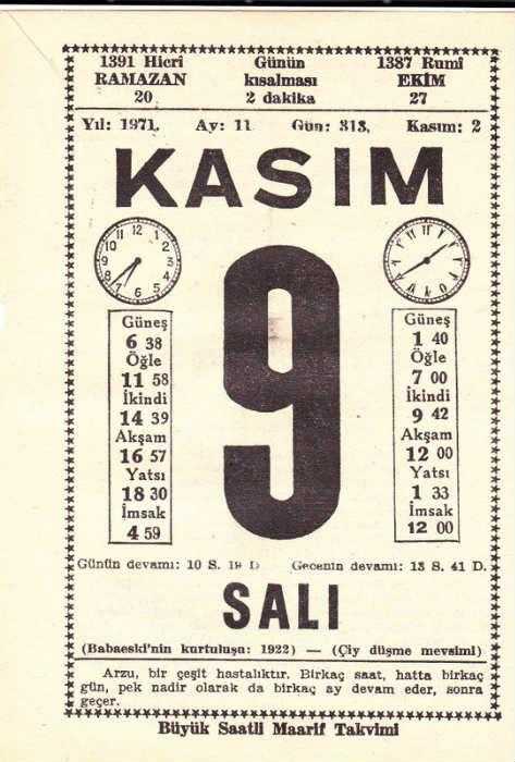 9 KASIM 1971 SAATLİ MAARİF TAKVİMİ YAPRAĞI, en son 1 yıl önce güncellenmiştir.