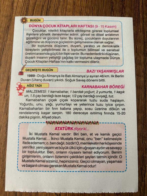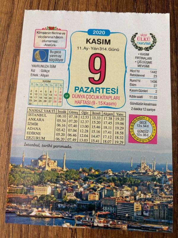 9 KASIM 2020 - TAKVİM YAPRAĞI - DOĞUM GÜNÜ HEDİYESİ - BÜYÜK SAATLİ MAARİF TAKVİMİ - İstanbul, tarihi yarımada -DÜNYA ÇOCUK KİTAPLARI HAFTASI - 1989 - Doğu Almanya ile Batı Almanya'yı ayıran 46 km. lik Berlin Duvarı (Utanç duvarı) yıkıldı. Soğuk Savaş dönemi bitti- KARNABAHAR BÖREĞİ - ATATÜRK, 5 ay önce satışa sunulmuştur.