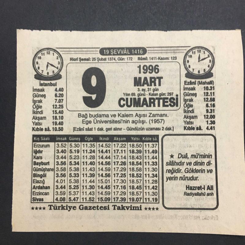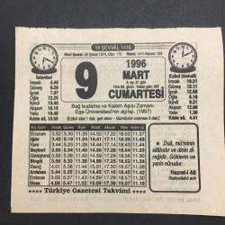 9 MART 1996 -TAKVİM YAPRAĞI-DOĞUM GÜNÜ HEDİYESİ-TÜRKİYE GAZETESİ TAKVİMİ,BAĞ BUDAMA VE KALEM AŞISI ZAMANI,EGE ÜNİVERSİTESİNİN AÇILIŞI 1957,KAĞIT VE MATBAA, en son 8 ay önce güncellenmiştir.