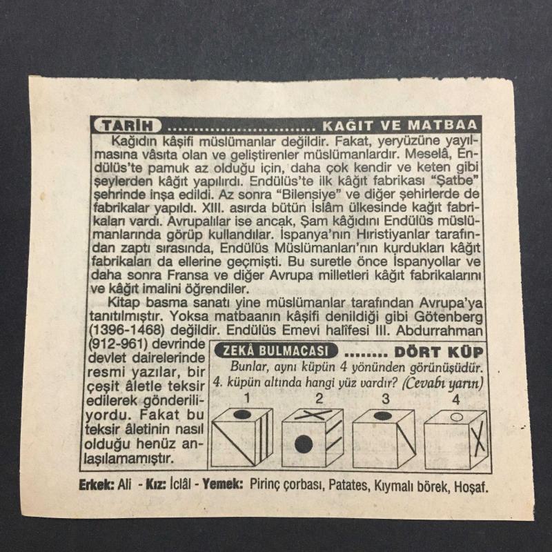 Gazeteler,dergiler,kitaplar harika hediyelerdir.Otantik,orijinal,nadir ve eski gazeteler,dergiler,kitaplar,efemeralar,objeler.Gazeteler bir aynadır.Kitaplar sadece okumak için değil birlikte yaşamak içindir . Kelimeler , notalar , sayılar kardeştirler.Kitaplar insanı binbir gözlü yapar.