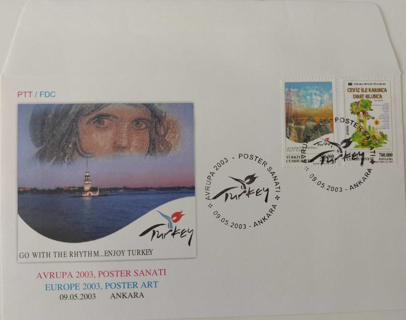 9 MAYIS 2003 EUROPA CEPT POSTER SANATI FDC'Sİ NADİR MÜHÜRLÜ ORİJİNAL TR3, 2 yıl önce satışa sunulmuştur.