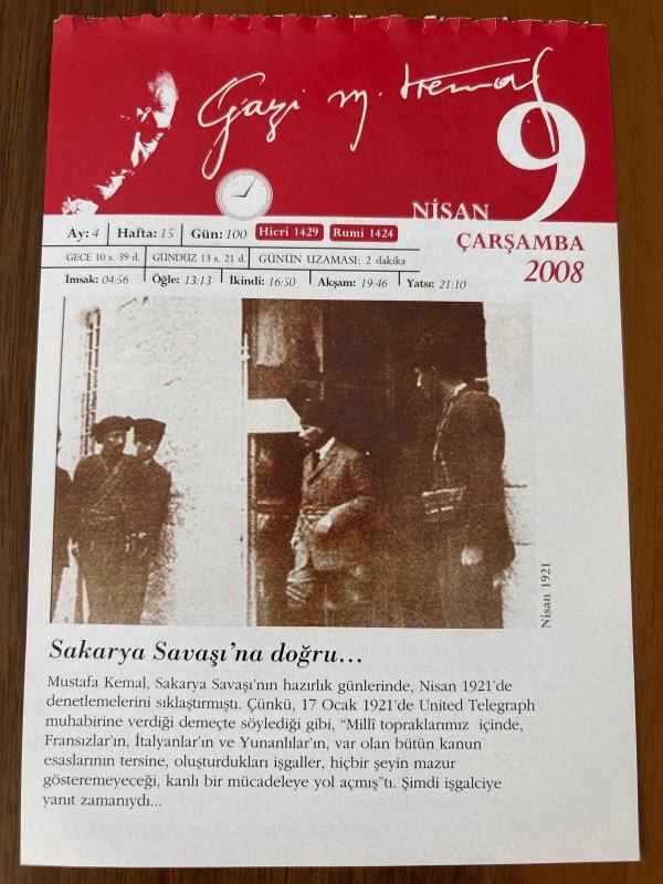 9 NİSAN 2008 - TAKVİM YAPRAĞI - DOĞUM GÜNÜ HEDİYESİ - GAZİ MUSTAFA KEMAL ATATÜRK FOTOĞRAFLI BÜYÜKÇEKMECE BELEDİYESİ TAKVİMİ - Sakarya Savaşı'na doğru - Haydutlar er geç kovulacak - 1588- Mimar Sinan 92 yaşında öldü - 1932- İlk kadın hakim Mürüvvet hanım Adana'da göreve başladı - 1936- İstanbul Telefon Şirketi devletçe satın alındı - 1945- Türkiye'de yerli ampul üretimi başladı - 1950- İlk Türk karikatürcülerinden Cemil Cem İstanbul'da öldü -1988- Şair, gazeteci, yazar Şevket Rado öldü - 1993- Tercüman gazetesi sahibi Kemal Ilıcak, beyin kanaması geçirerek öldü, en son 9 ay önce güncellenmiştir.