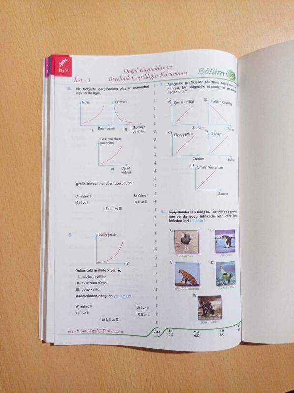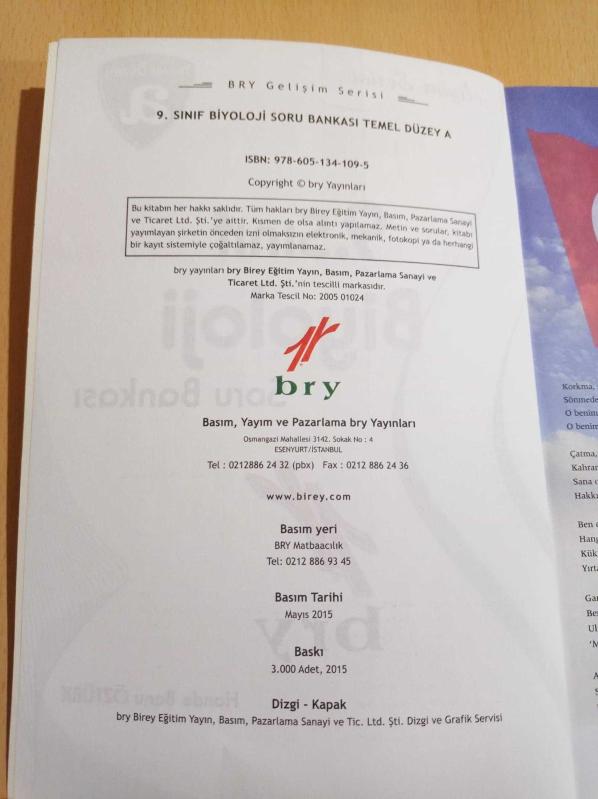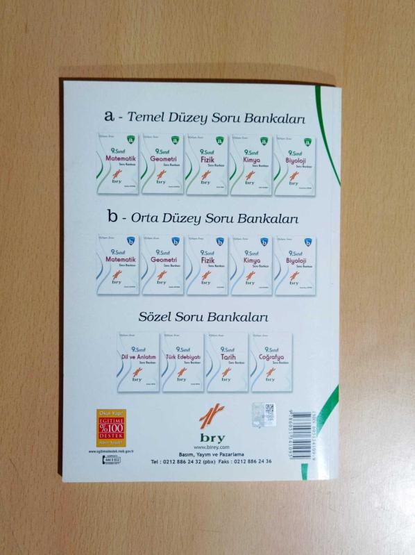 Birey yayınları, 9.sınıf biyoloji soru bankası, a serisi temel düzey. Bandrollüdür, karton kapaktır ve tamamı kuşe kağıda basılıdır. Cevap anahtarları her testin bitiminde sayfanın alt kısmında mevcuttur. Eksik, yırtık veya kopukluk yoktur, genel olarak temiz ve sorunsuz durumdadır. 144 sayfalık kitabın sadece 12 sayfasına kurşun kalem kullanılmıştır, istediğiniz takdirde kolaylıkla silebilirsiniz, bu durumdan dolayı fiyatı uygun yazdım lütfen sizde bunu bilerek satın alınız. Sayfamdaki diğer ürünlerimede bakınız.