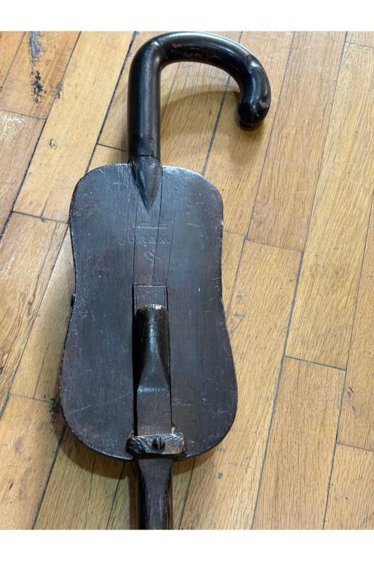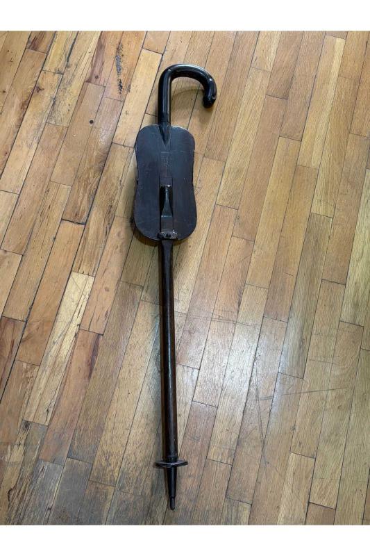 90 cm boyunda Avrupa oturak olan baston başlıklı antika/koleksiyon objesinin menşei belirtilmemiştir. Objenin ait olduğu dönem bilinmeketedir.