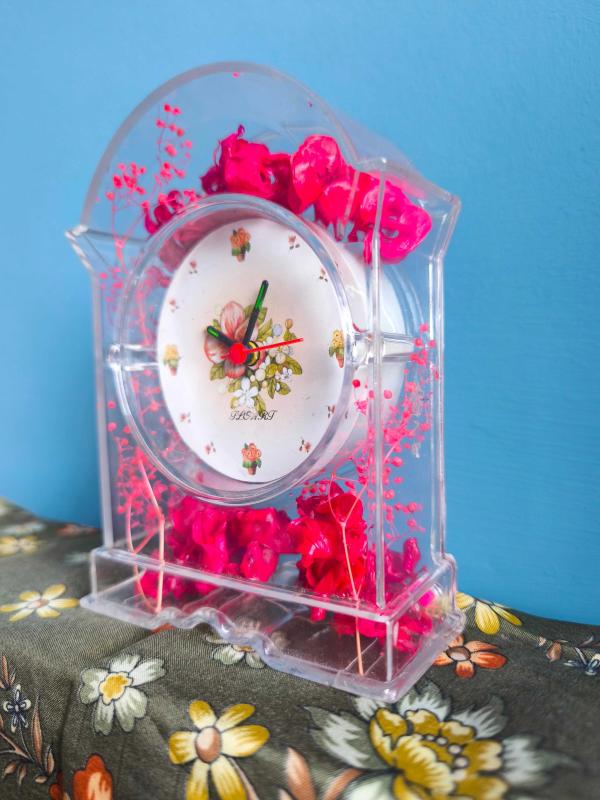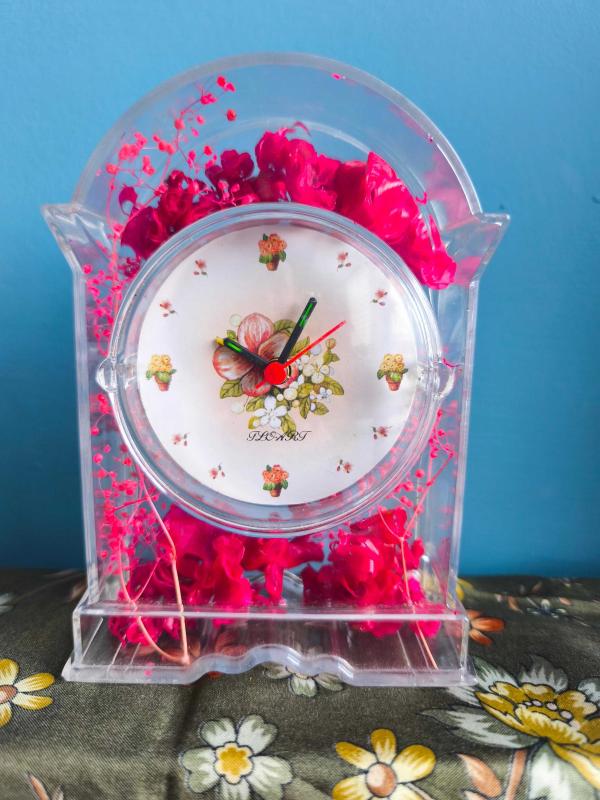 Saat çalışır durumda içinde kuru güller var kırık atık yok.. Hediyelik için ideal retro