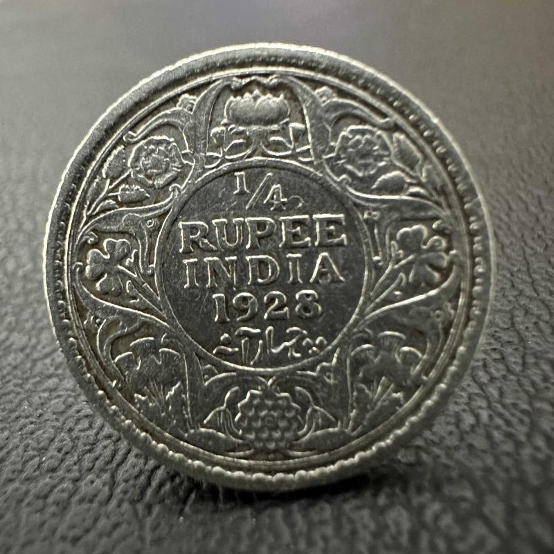 917 Ayar Gümüş İngiliz Hindistan ¼ Rupi, 1928. Kral V. George, 8 saat önce satışa sunulmuştur.