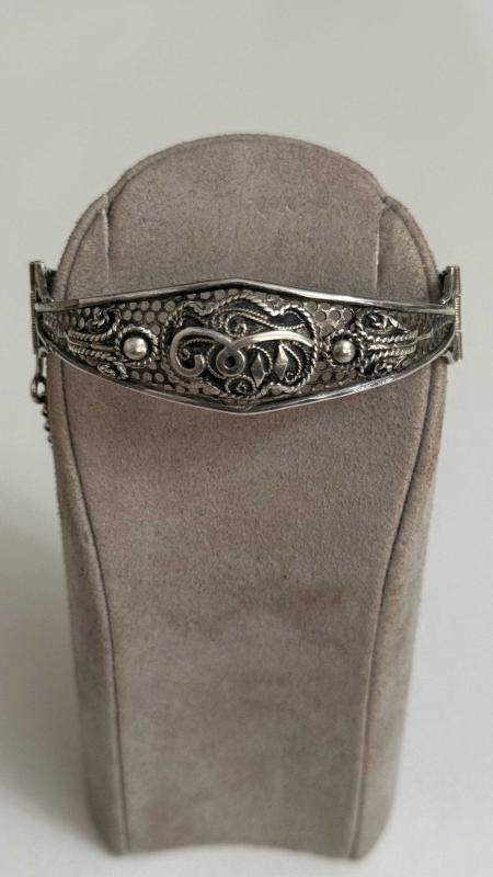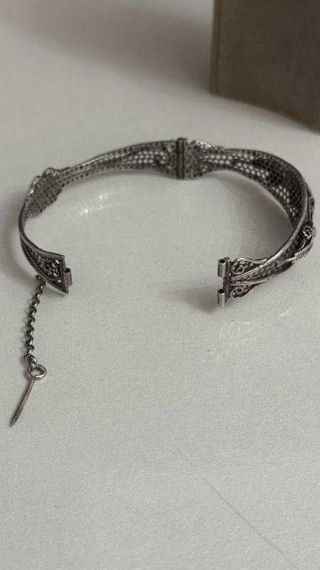 925 AYAR GÜMÜŞ ÇOK ESKİ TELKARİ BİLEZİK başlıklı antika/koleksiyon objesi Osmanlı menşe’lidir. 1900-1919 arası dönemine aittir.