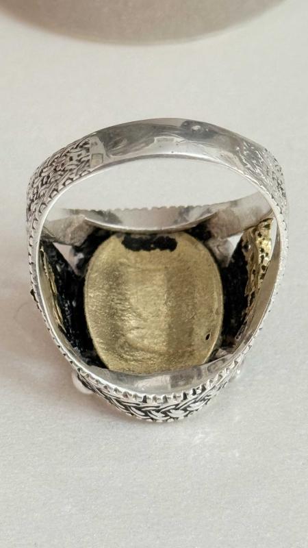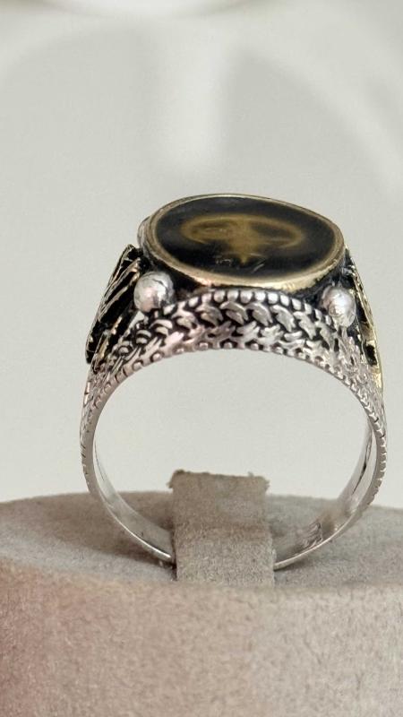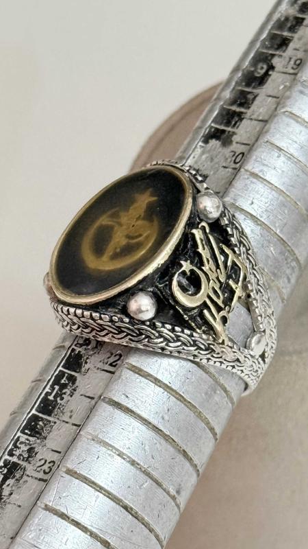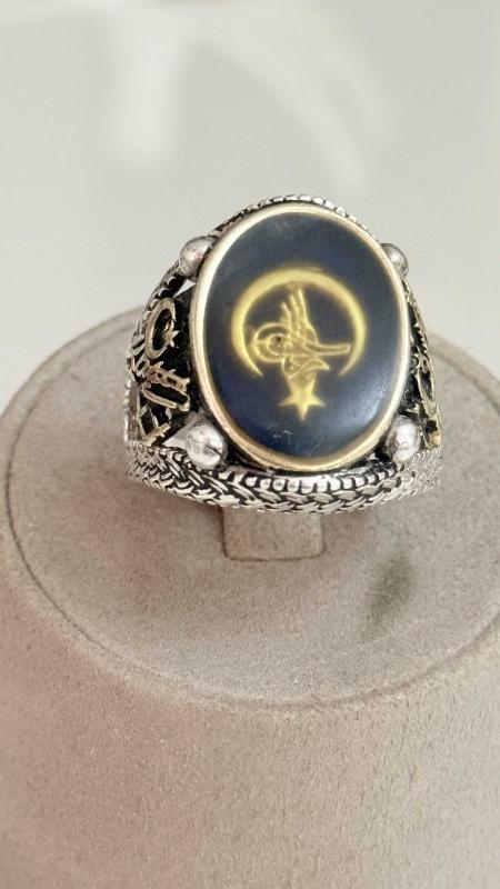 Çok Özel Tasarım her iki kenarında Kemal Atatürk imzası ay yıldız kabartma işçilikli dönem eski çok aykırı çok özel bir sanat eseri yüzüğün iç kısmı imza kısmı altın olma ihtimali var test ettirmedik olabilir alanın şansına gene de altın demiyoruz tam koleksiyonluk kusursuz çok aykırı bi eser 27 numara ölçü