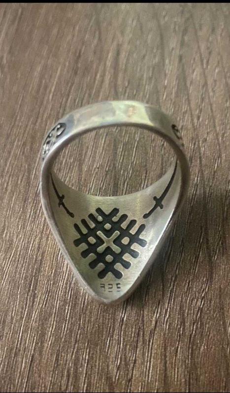 Özgün tasarımlı, tamamı 925 ayar gümüşten yapılmış ağır ve kaliteli bir erkek yüzüğü. Ön yüzünde Selçuklu / Orta Asya esintili geometrik ve hat motifleri, iç kısmında ise siyah dolgulu şık bir desen ve 925 damgası bulunuyor. Yüzük toplam 12,57 gram gümüş ağırlığıyla elde hissedilen tok ve dolu bir yapıya sahip. Günlük kullanımda da, koleksiyonluk ya da hediye olarak da rahatlıkla tercih edilebilir.