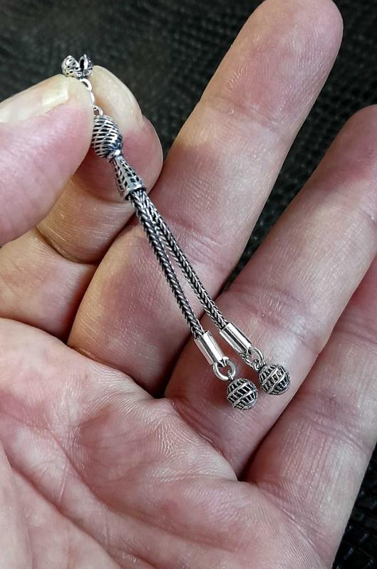 Yeni yapım, kullanılmamış Sıfır komple 925 ayar Gümüş Tesbih püskülü * 2,49 gr * özel işçilikli püskül ucu küre tane ölçü 5 mm dir.
