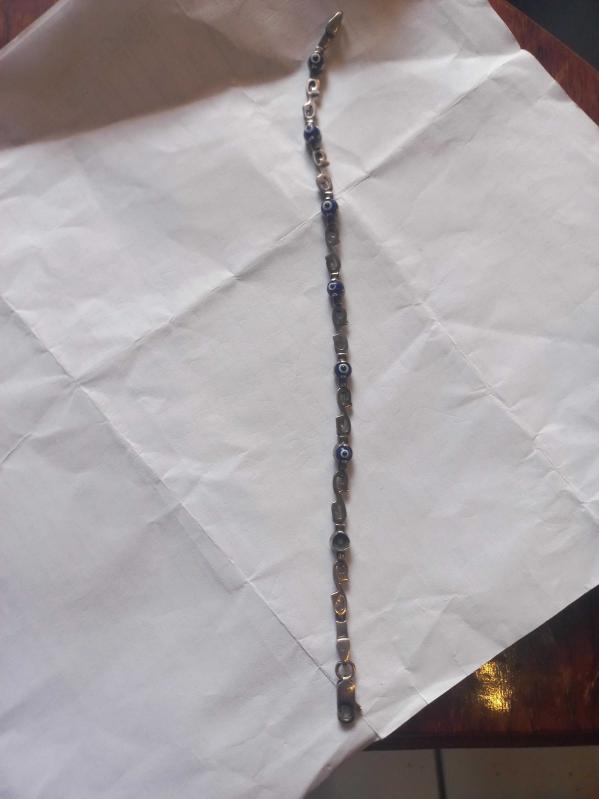 925 ayar gümüş nazarlıklı bileklik 9 gram başlıklı ürün, Antika-Koleksiyon, Hobi-Sanat > Antika > Antika Metal Objeler > Gümüş > Gümüş kategorisinde İkinci El olarak satışa sunulmuştur.