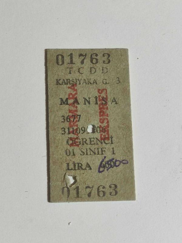 9537-TCDD KARŞIYAKA - MANİSA MARMARA EKSPRES YOLCU BİLETİ**BİLET NO 01763 -ÖĞRENCİ 1.SINIF***