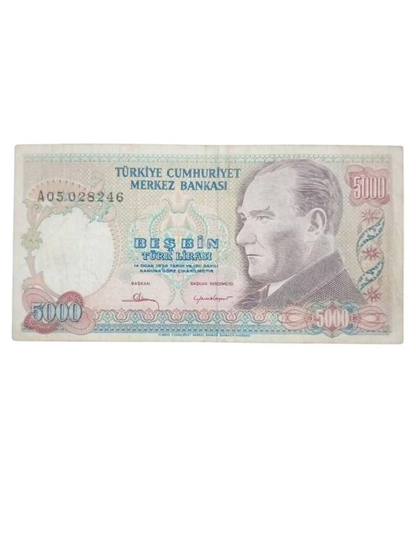 A 05 / 7. Emisyon 5000 Türk Lirası Değerli Seri Koleksiyon Cumhuriyet Dönemi Kağıt Para.