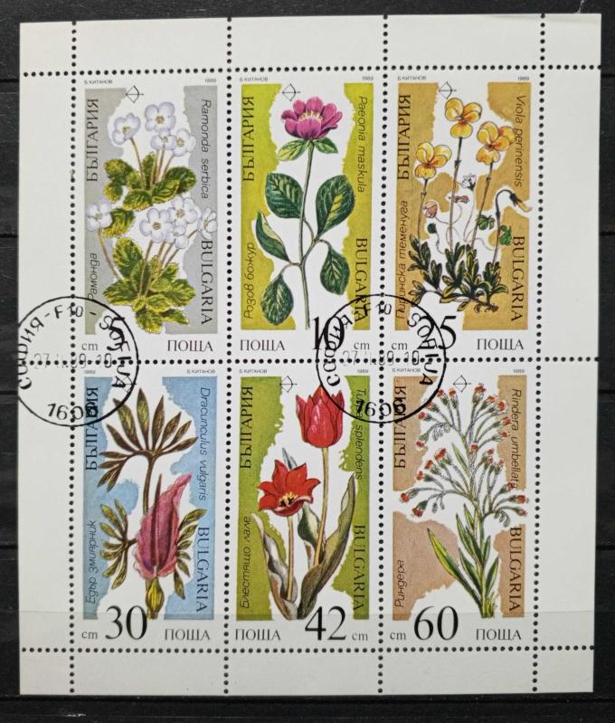 A.1828 1989 BİTKİLER TEHLİKE ALTINDAKİ BİTKİ TÜRLERİ DAMGALI BLOK BULGARİSTAN