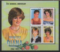 A.6199 2003 KRALİYET PRENSES DİANA'NIN ÖLÜMÜNÜN 5. YIL DÖNÜMÜ 1961-1997 MNH BLOK BHUTAN