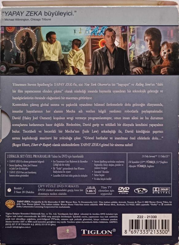 A.İ. YAPAY ZEKA DVD FİLM ORJİNAL 2.EL DVD ( 9866, 4 gün önce satışa sunulmuştur.