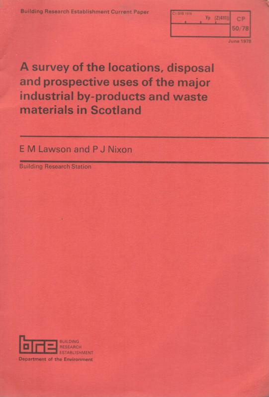 A SURVEY OF THE LOCATİONS, DİSPOSAL AND PROSPECTİVE USES OF THE MAJOR İNDUSTRİAL BY-PRODUCTS AND WASTE MATERİALS İN SCOTLAND E M LAWSON AND P J NİXON, . tarafından kaleme alınmıştır. Kitap 1978 yılında yayınlanmıştır. 54 sayfadır. A SURVEY OF THE LOCATİONS, DİSPOSAL AND PROSPECTİVE USES OF THE MAJOR İNDUSTRİAL BY-PRODUCTS AND WASTE MATERİALS İN SCOTLAND E M LAWSON AND P J NİXON adlı eser İngilizce dilindedir.