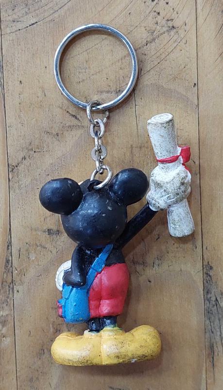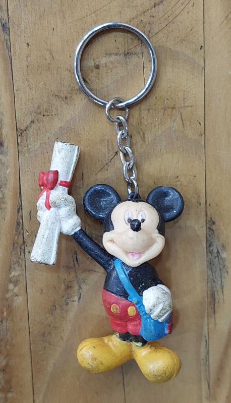 ABD, Mickey Mouse/Miki Fare (Okulda Diploma Alırken) Anahtarlık. Walt Disney Üretimi. Kullanılmış. Nadir!/Kaliteli Sert Plastik. 1980'ler.