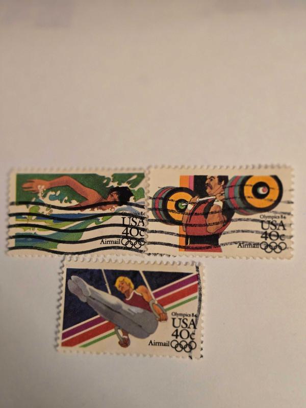 Lot.3 1984 Los Angeles Yaz Olimpiyat Oyunları anısına Amerika Birleşik Devletleri (USA) tarafından çıkarılan Uçak Postası (Airmail) pullarıdır. 🥇 Pul Bilgileri Ülke: Amerika Birleşik Devletleri (USA) Değer: 40 Sant (40¢) Amaç: Uçak Postası (Airmail) Konu: 1984 Los Angeles Yaz Olimpiyat Oyunları Tasarım: Sizin paylaştığınız resimde görülen pullar, dörtlü bir seri (blok) halinde çıkarılan pulların bir kısmıdır. Görülen spor dalları şunlardır: Yüzme (Swimming) Halter (Weightlifting) Erkekler Jimnastik (Men's Gymnastics) - Altta görünen. Dördüncü pul ise Gülle Atma (Shot Put) sporunu içermekteydi. Scott Katalog Numaraları: Bu dörtlü blok genellikle Scott #C105-C108 aralığında kataloglanır. Emisyon 1983