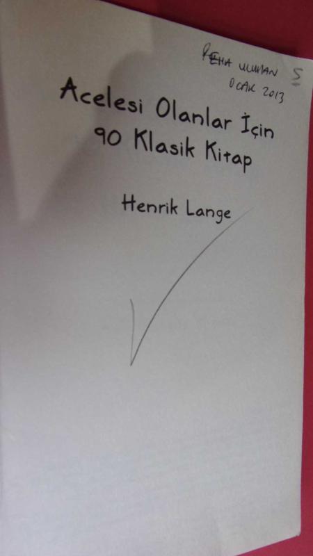 ACELESİ OLANLAR İÇİN 90 KLASİK KİTAP, HENRIK LANGE tarafından kaleme alınmıştır. Kitap 2011 yılında SAY YAYINLARI tarafından [İSTANBUL] yayınlanmıştır. Satışta olan kitap, yayınevinin 1. baskısıdır. Bu baskının çevirisi ASLI KUTSOY HISIM tarafından yapılmıştır. 90 sayfadır. ACELESİ OLANLAR İÇİN 90 KLASİK KİTAP adlı eser Türkçe dilindedir.