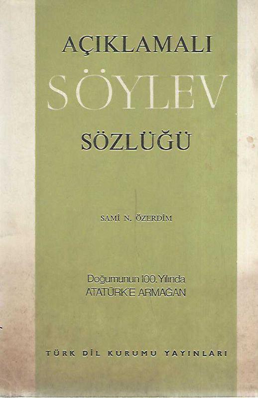 AÇIKLAMALI SÖYLEV SÖZLÜĞÜ - DOĞUMUNUN 100.YILINDA ATATÜRK'E ARMAĞAN, SAMİ S. ÖZERDİM tarafından kaleme alınmıştır. Kitap 1981 yılında TÜRK DİL KURUMU tarafından [ANKARA] yayınlanmıştır. 109 sayfadır. AÇIKLAMALI SÖYLEV SÖZLÜĞÜ - DOĞUMUNUN 100.YILINDA ATATÜRK'E ARMAĞAN adlı eser Türkçe dilindedir.