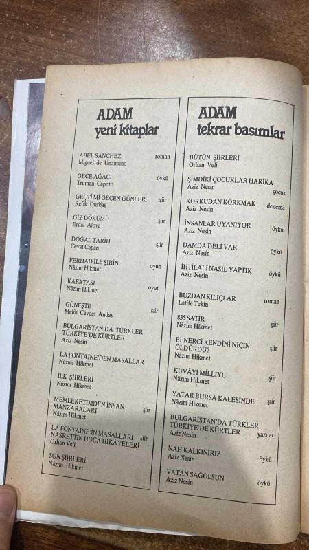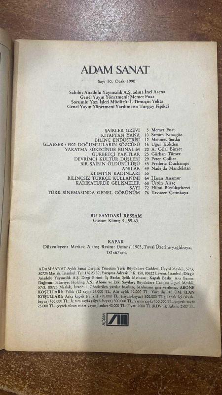 ADAM SANAT DERGİSİ - OCAK 1990 SAYI: 50 MEMET FUAT - SAMİM KOCAGÖZ - MEHMET SERDAR - UĞUR KÖKDEN - A. CELAL BİNZET - GÜRHAN TÜMER - PETER COLLIER - FREDERIC DUCHAMPS - NADEJDA MANDELSTAN - HASAN ANAMUR - ÜSTÜN ALSAÇ - HİLMİ BÜYÜKŞEKERCİ - YAVUZER ÇETİNKAYA - GUSTAV KLIMT - İNCİ ASENA - İ. TİMUÇİN YEKTA - TURGAY FİŞEKÇİ ŞAİRLER GREVİ - KİTAPTAN YANA - BİLİNÇ ENDÜSTRİSİ - GLAESER: 1902 DOĞUMLULARIN SÖZCÜSÜ - YARATMA SÜRECİNDE BUNALIM - GURBETÇİ YAPITLAR - DEVRİMCİ KÜLTÜR DÜŞLERİ - BİR ŞAİRİN ÖLDÜRÜLÜŞÜ - ANILAR - KLIMT'İN KADINLARI - BİLİNÇSİZ TÜRKÇE KULLANIMI - KARİKATÜRDE GELİŞMELER - TÜRK SİNEMASINDA GENEL GÖRÜNÜM - BU SAYIDAKİ RESSAM - KAPAK - ABONE KOŞULLARI - İLAN KOŞULLARI - 80 SAYFA, ANADOLU YAYINCILIK A.Ş İNCİ ASENA tarafından kaleme alınmıştır. Eser MEMET FUAT editörlüğünde hazırlanmıştır. Kitap . tarafından [ŞEFİK MATBAACILIK] yayınlanmıştır. 80 sayfadır. ADAM SANAT DERGİSİ - OCAK 1990 SAYI: 50 MEMET FUAT - SAMİM KOCAGÖZ - MEHMET SERDAR - UĞUR KÖKDEN - A. CELAL BİNZET - GÜRHAN TÜMER - PETER COLLIER - FREDERIC DUCHAMPS - NADEJDA MANDELSTAN - HASAN ANAMUR - ÜSTÜN ALSAÇ - HİLMİ BÜYÜKŞEKERCİ - YAVUZER ÇETİNKAYA - GUSTAV KLIMT - İNCİ ASENA - İ. TİMUÇİN YEKTA - TURGAY FİŞEKÇİ ŞAİRLER GREVİ - KİTAPTAN YANA - BİLİNÇ ENDÜSTRİSİ - GLAESER: 1902 DOĞUMLULARIN SÖZCÜSÜ - YARATMA SÜRECİNDE BUNALIM - GURBETÇİ YAPITLAR - DEVRİMCİ KÜLTÜR DÜŞLERİ - BİR ŞAİRİN ÖLDÜRÜLÜŞÜ - ANILAR - KLIMT'İN KADINLARI - BİLİNÇSİZ TÜRKÇE KULLANIMI - KARİKATÜRDE GELİŞMELER - TÜRK SİNEMASINDA GENEL GÖRÜNÜM - BU SAYIDAKİ RESSAM - KAPAK - ABONE KOŞULLARI - İLAN KOŞULLARI - 80 SAYFA adlı eser Türkçe dilindedir.