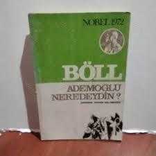 ADEMOĞLU NEREDEYDİN?, H. BÖLL tarafından kaleme alınmıştır. Kitap 1971 yılında CEM YAYINEVİ tarafından [İSTANBUL] yayınlanmıştır. Bu baskının çevirisi ZEYYAT SELİMOĞLU tarafından yapılmıştır. 230 sayfadır. ADEMOĞLU NEREDEYDİN? adlı eser Türkçe dilindedir.